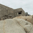 繞過標誌進入據點,有一條迎賓長廊,兩側的植被恣意地生長,儼然擺脫了迎賓禮儀及秩序下產生的景觀規訓。這裡的瞭望指揮所,保有多個完整的窗口,這些傾斜、乾裂的窗口各自框置了其獨特的觀看通道,透過這些開孔看著海上的船隻及海浪,就能看進另一個時空。指揮所的下一層,有扇門前往海岸,踏著岩石便進入了戰時砲火掃視、玻璃碎尖遍佈的無人區,從此處往回看,可以看清整個二〇據點突出於地面的結構、也可以看到砲台槍口隱匿於岩岸內的分佈,這種一覽無遺的觀視,是軍事機密的暴露,在戰時不被允許,今時卻已無人在意。在二〇據點最底端的砲台邊,炸開一處了可供人通行並前往海岸的不規則破口,這個巨大的破裂,意外地替此處生出了更多與空氣、光線交流的機會,使得原本陰暗且遭侷限的空間格局,充滿流通的生息。